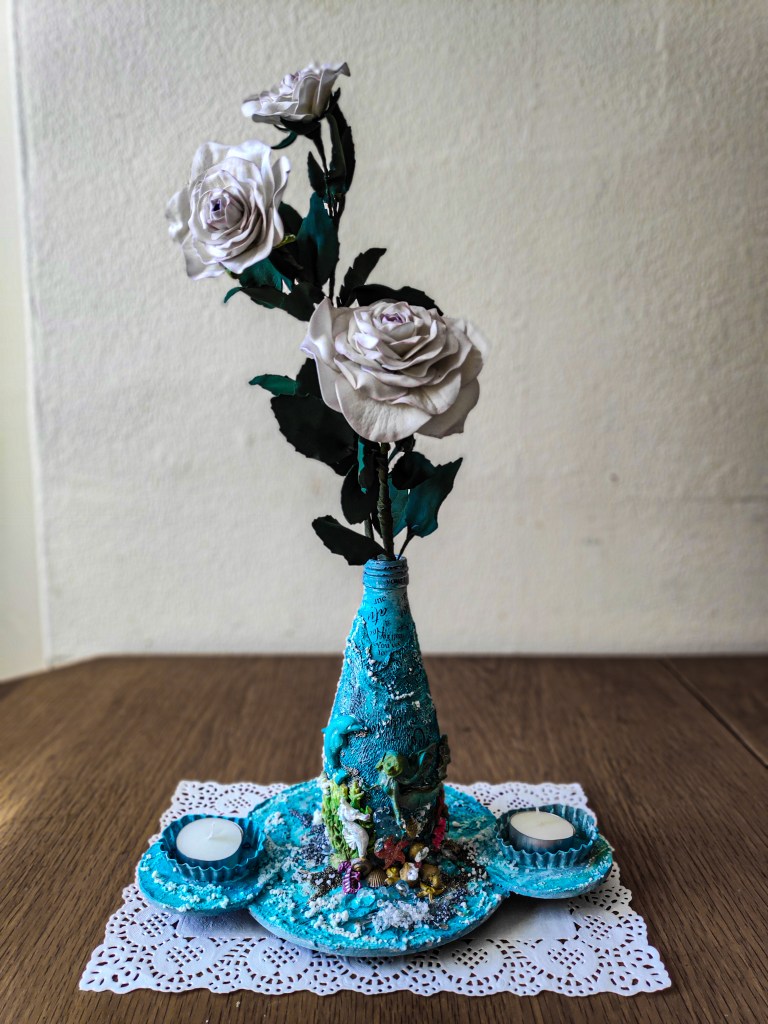 3 thoughts on “Oceanic Dwellers | Mix Media Altered Vase