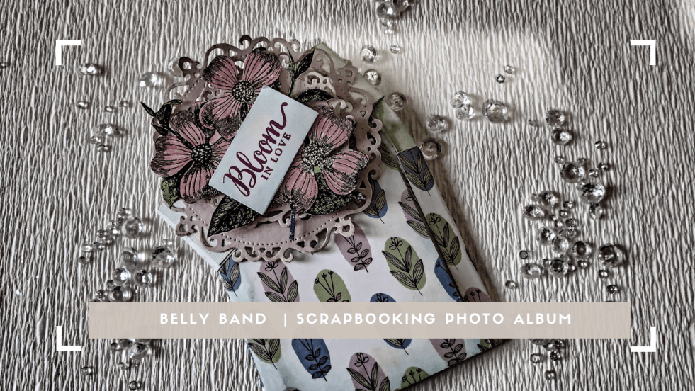 Designed a belly band using a card stock and stamped image. The flowers to adorn the photo frame is cutouts from Crafters corner motif sheets.The sentiment “Bloom in Love” is used from Mudra’s Stamps.Distessed the sides of the photo frame using Timholtz stormy sky distress ink.