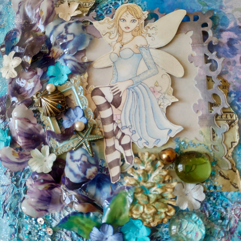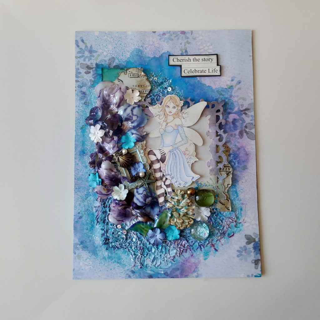 Used Gesso for the base texture ,Mod Podge, colour splash and blings to adorn the picture.