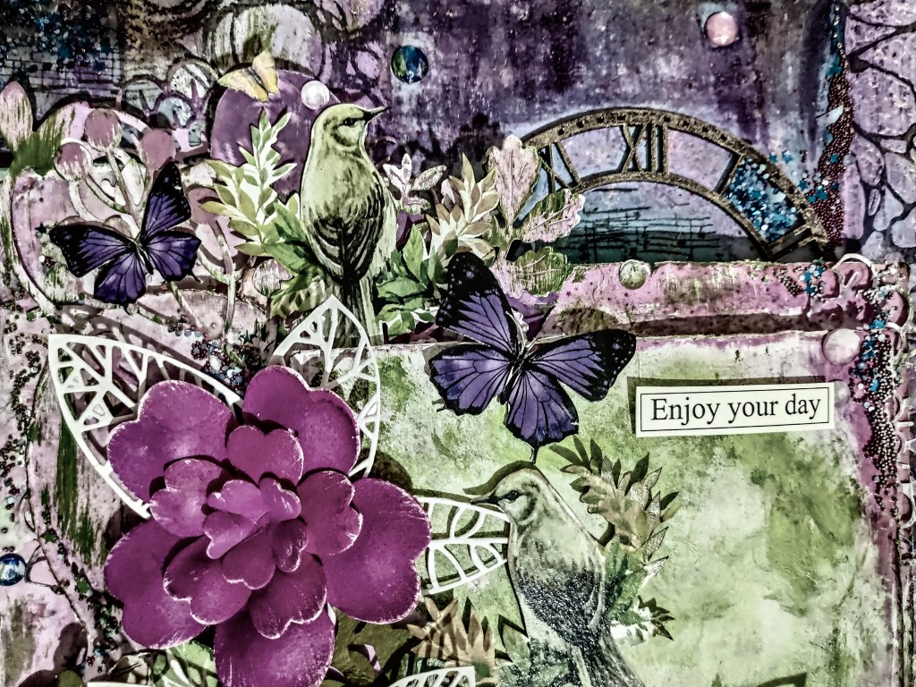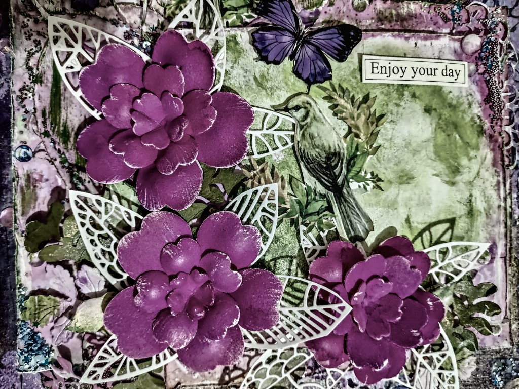 I love playing with dies, stamps, stencils,papers, different mediums ,colours and ink.