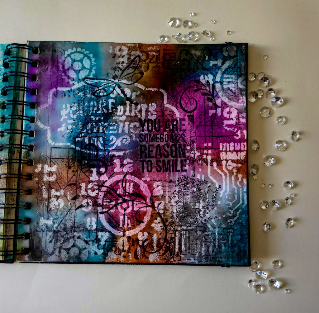 I love playing with dies, stamps, stencils,papers, different mediums ,colours and ink.