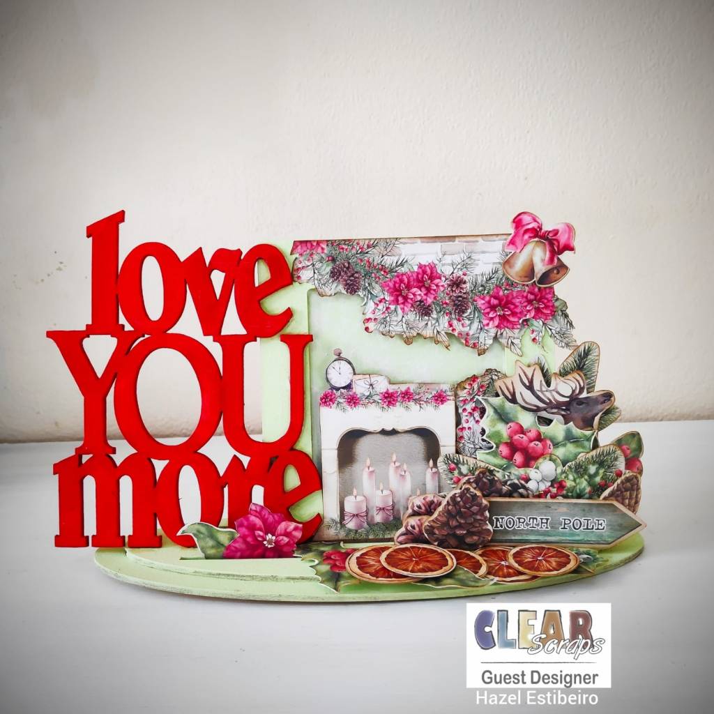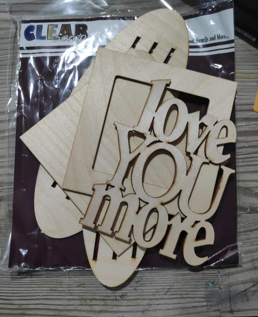 - Here , I have used the Decorative wood frame and word chipboard “love you more” from Clear Scraps