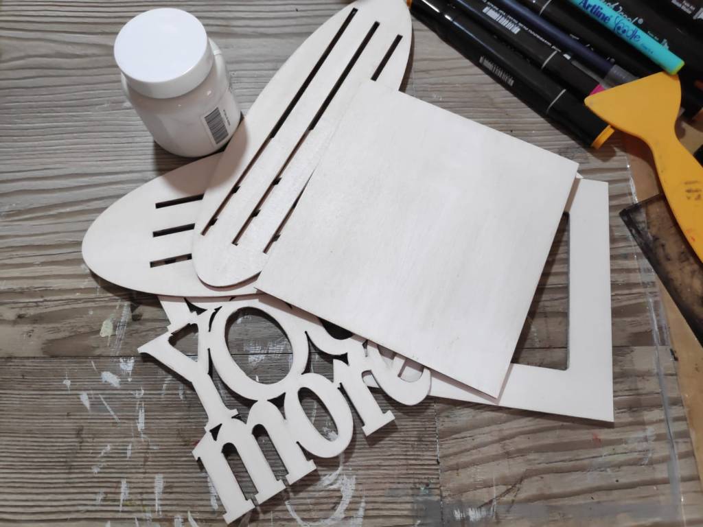 2. I have used white Gesso to prime the wood frames and the letter chipboard.