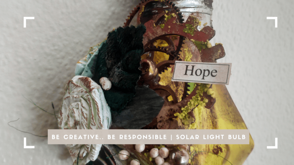 Your word is a lamp.. to guide my feet and a light for my path... my creativity is a beginning to create a responsible art .... Moodboard This project is a submission for the June Month Challenge 2020 for Mix Media Place. Following is the link https://mixedmediaplace.blogspot.com/2020/06/june-2020-challenge.html Solar Light Bulb When energy is coming from… Continue reading Be Creative … Be Responsible | Solar Light Bulb
